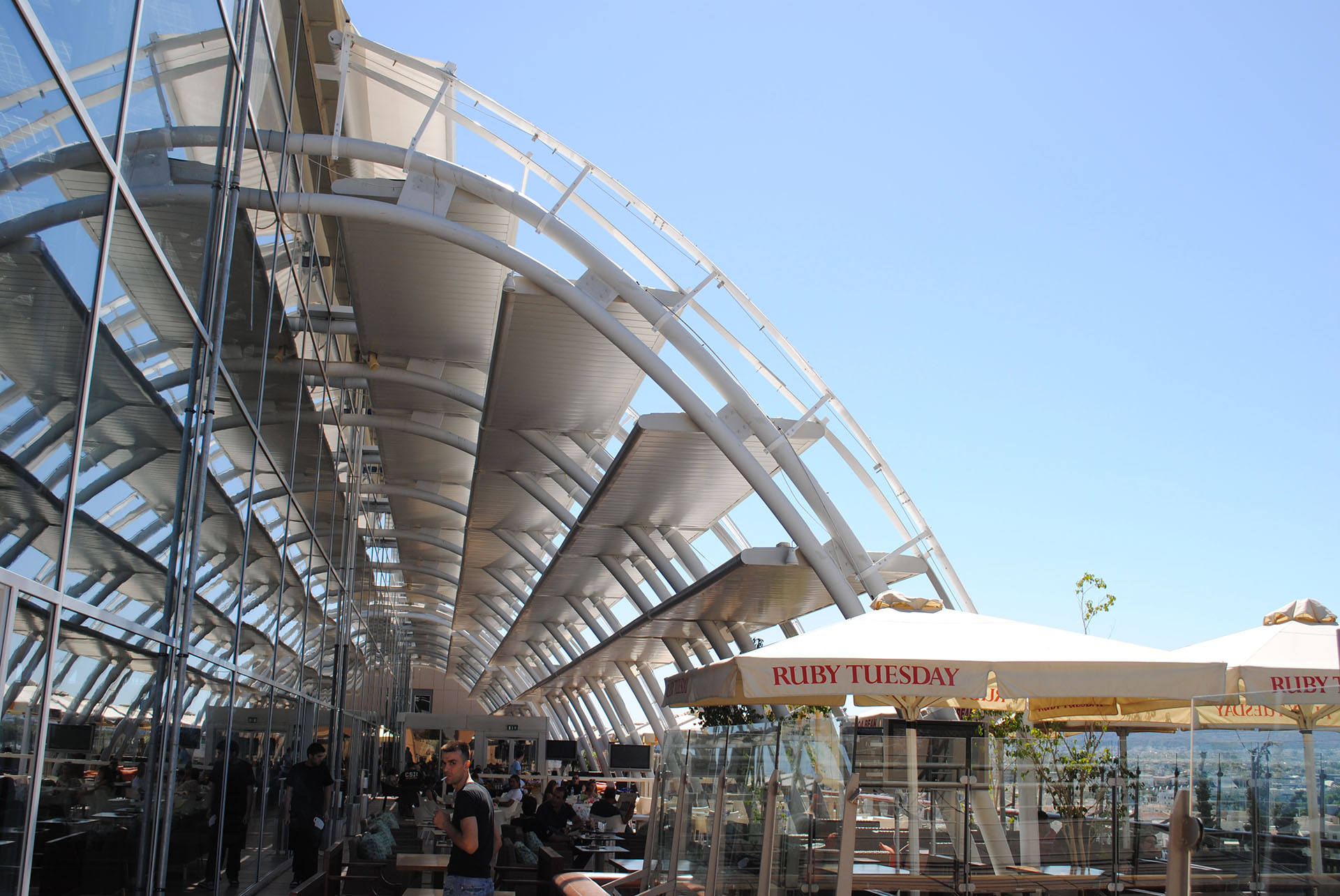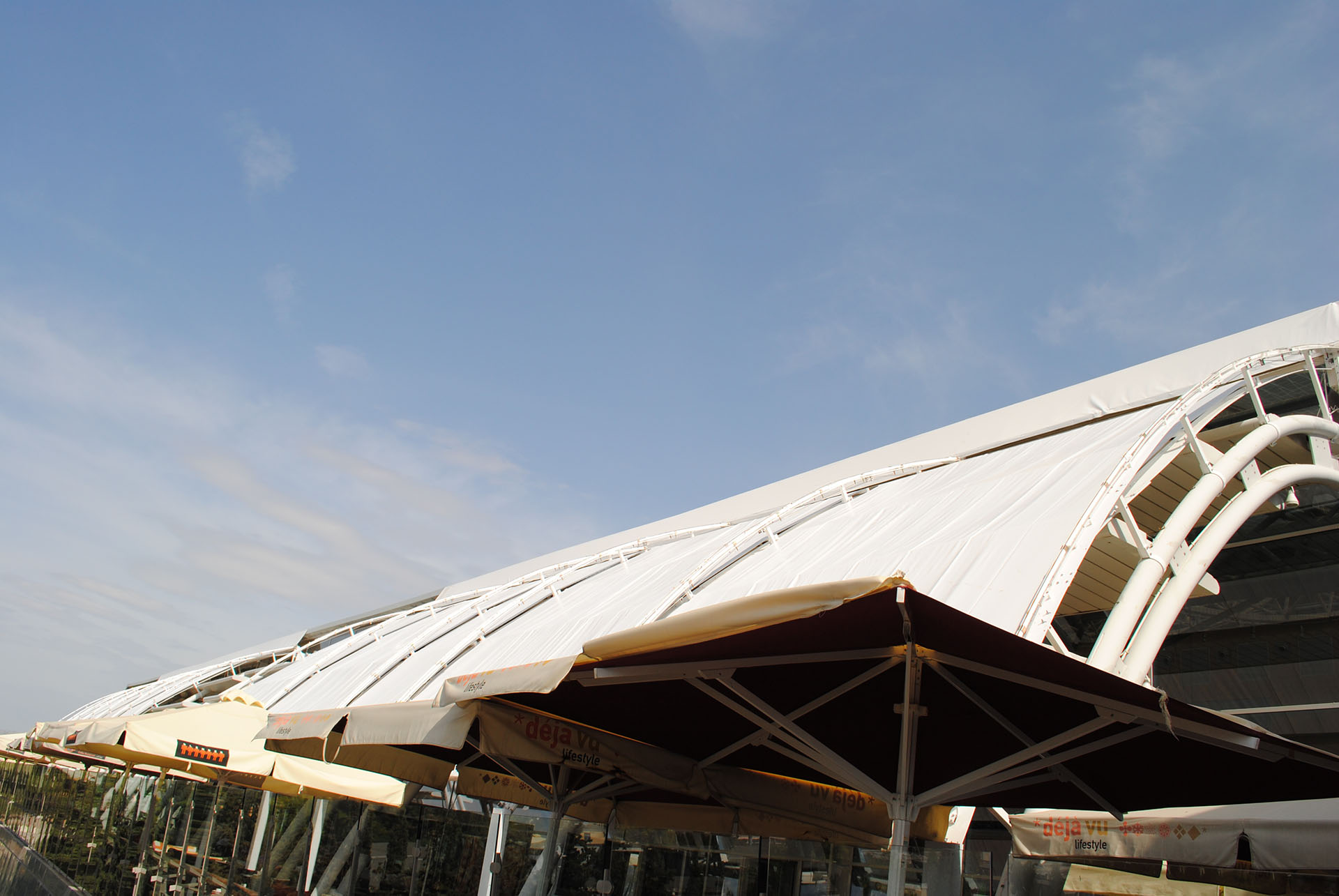 Κάλυψη με τέντα ηλεκτροκίνητη συνολικής επιφάνειας 900τ.μ. στο χώρο με τις καφετέριες του MALL.