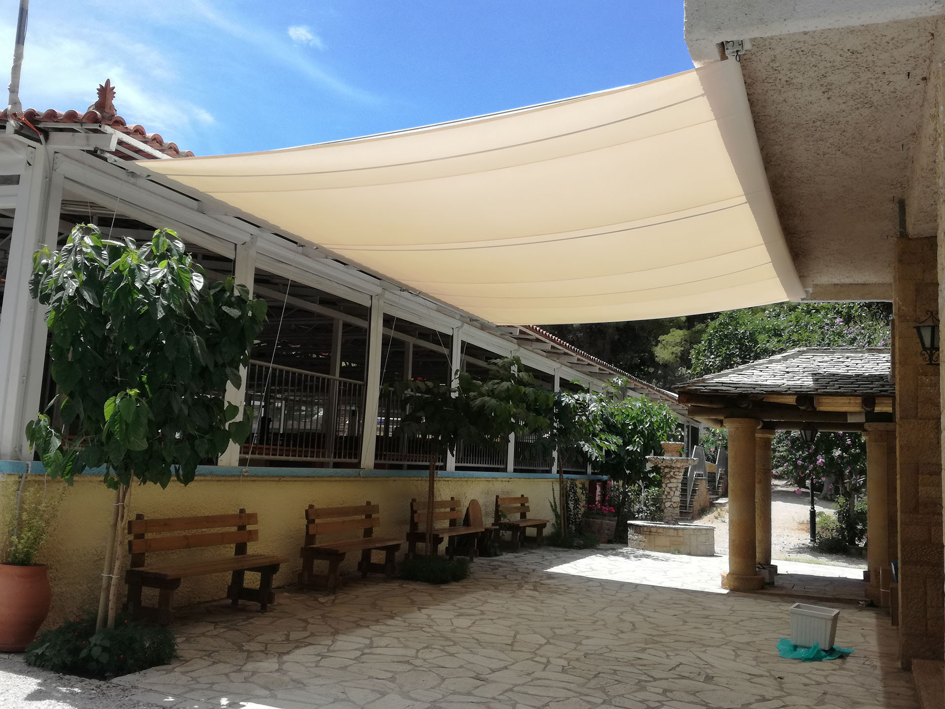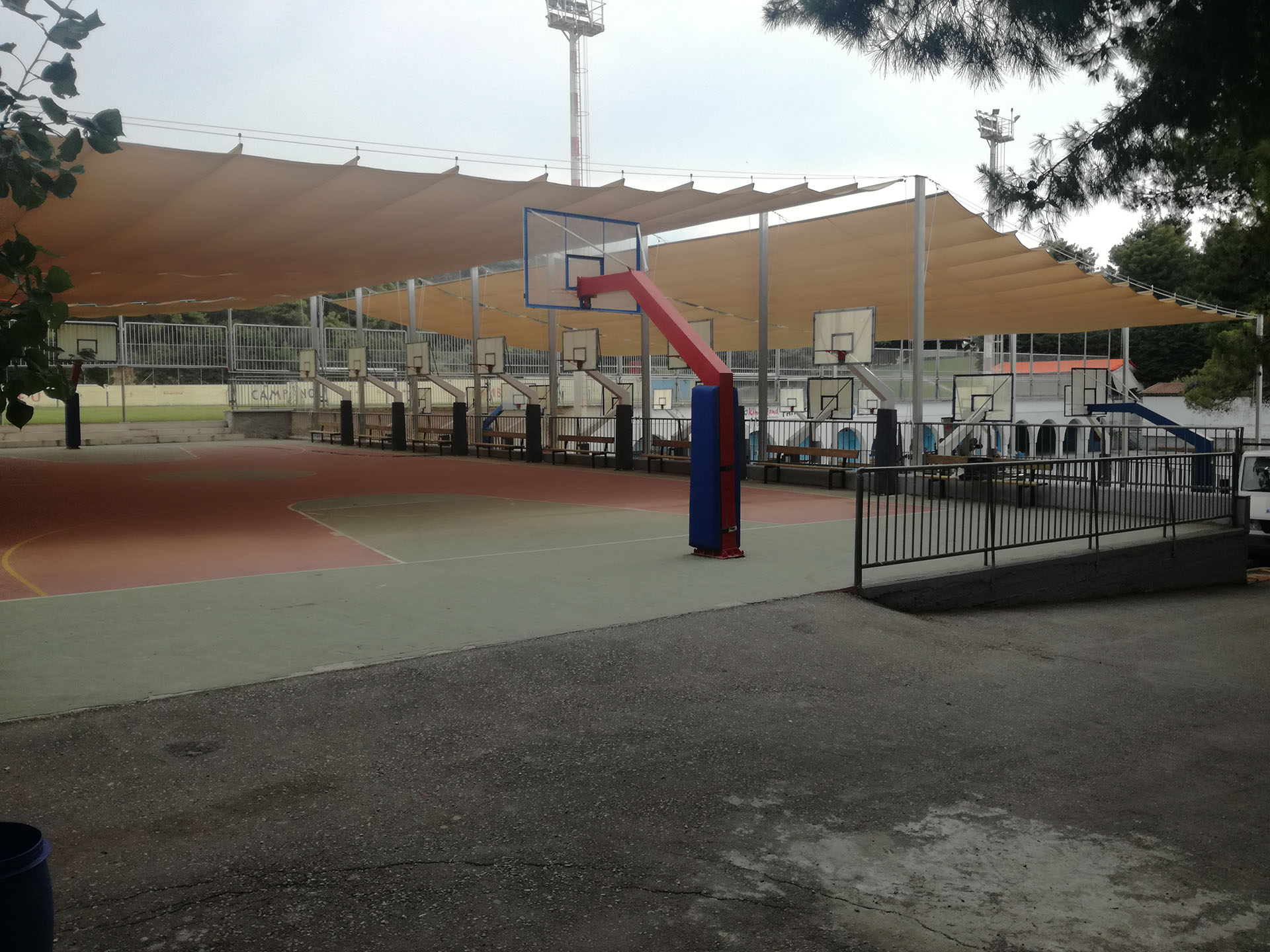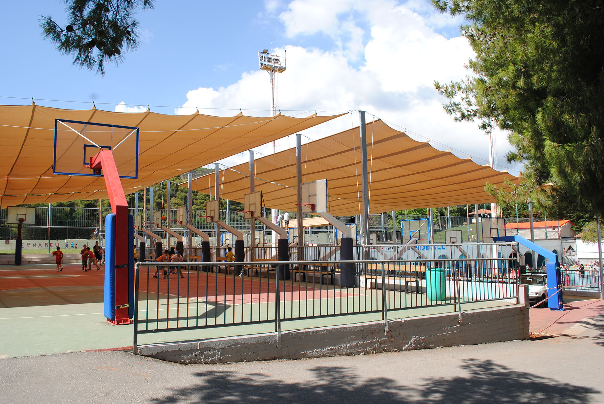 Κάλυψη υπαίθριων χώρων όπως γήπεδα μπάσκετ, εστιατόρια, χώροι δραστηριοτήτων για την ηλιοπροστασία.
