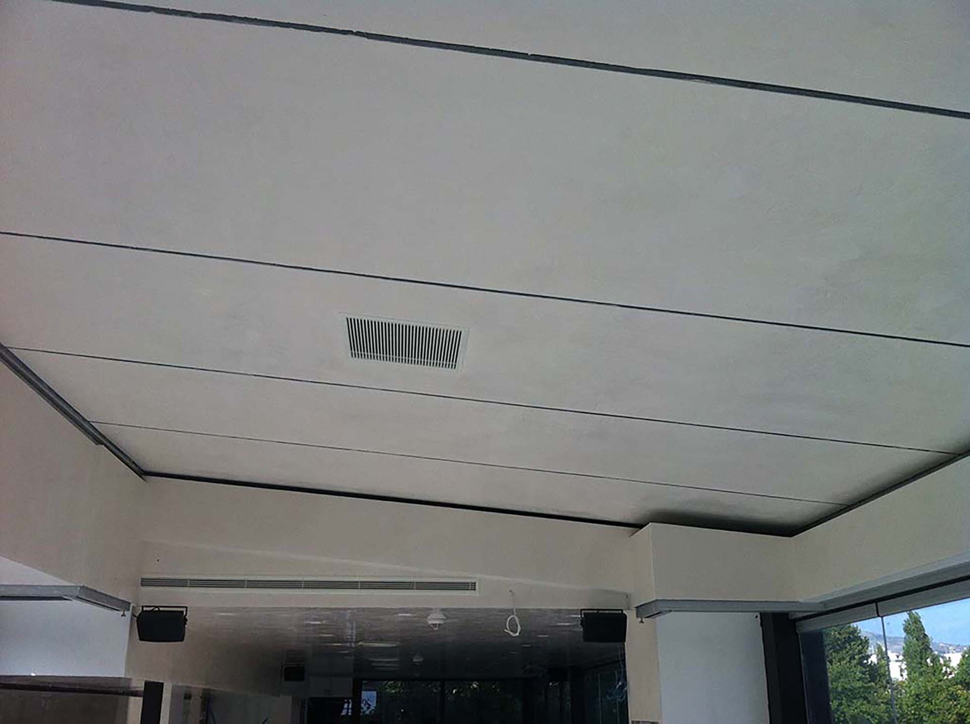 Κατασκευή κινητής οροφής τύπου βαγονιού, διαστάσεων 5,00m x 6,00m από μεταλλικό σκελετό και κάλυψη αυτού από πάνελ πουλυουρεθάνης.